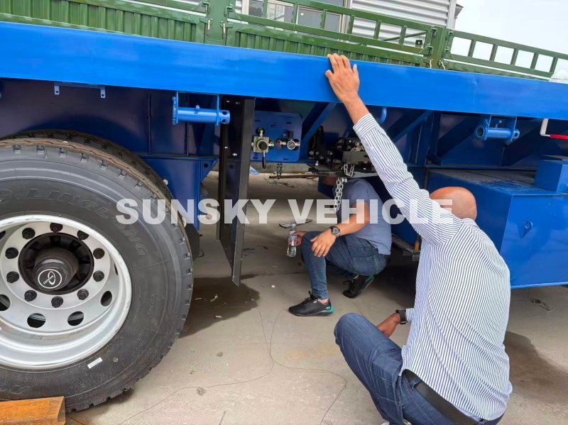 As a professional manufacturer specializing in semi-trailer exports, we showcased the same model that is popular in the Algerian market and provided a comprehensive explanation of the vehicle's load-bearing design, chassis structure, trailer durability, and safety.